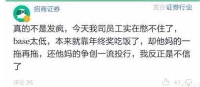 今天小编向招商证券询问了这件事,公司相关人士回应说:公司每年都是4-5月份这个时间段发年终奖,发年终奖需要走流程,发放时间在适当范围内调整也是正常的。吐槽那个人可能是新来的,手头比较紧,这只是个别现象。