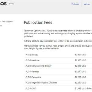 记者查阅发现,国外版面费的价格基本从1000美元到5000美元之间浮动。英国自然出版集团旗下的OA期刊Nature Conmmunications向中国作者收取的费用为每篇5087美元(约合33100元人民币)。PLOS出版集团旗下的各大收费期刊版面费用标准,价格最低的是《PLOS ONE》的1495美元,《PLOS Biology》和《PLOS Medicine》价格相对较高,为2900美元。