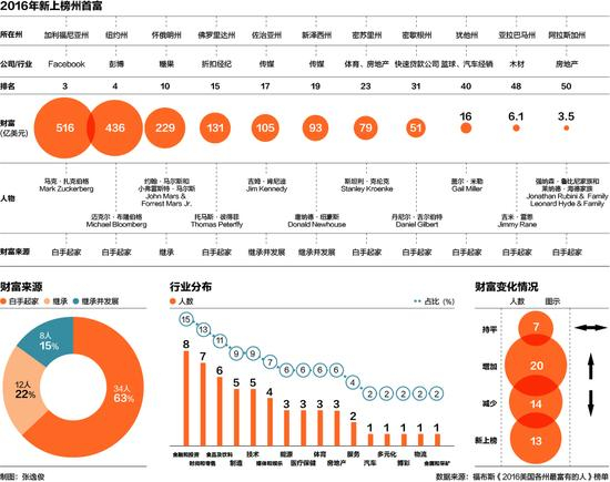 5月25日,《福布斯》第二年跟踪美国每个州的首富情况,发布了一份名为《2016美国各州最富有的人》榜单。《第一财经日报》记者对这份榜单进行了详细梳理,得出了上述信息。