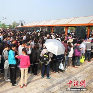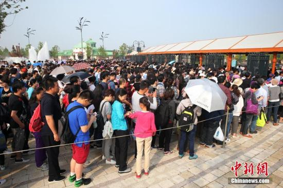 5月31日,游客在上海迪士尼乐园门外排起长队等候开门。上海迪士尼度假区自5月7日起进入运营测试阶段以来,每天慕名而来的游客络绎不绝,一股迪士尼热正在上海兴起。中新社记者 汤彦俊 摄