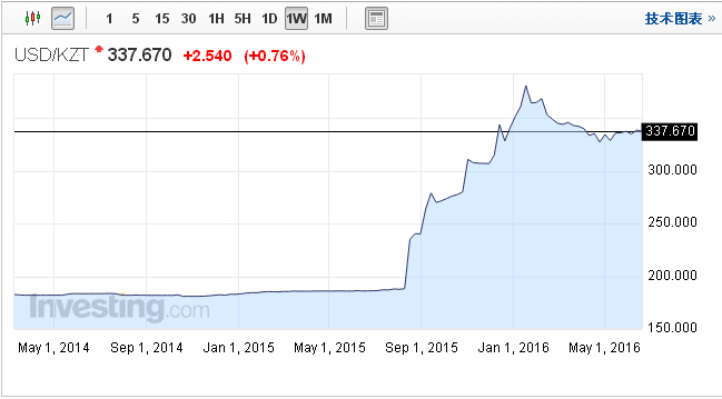去年8月20日开始,哈萨克斯坦取消汇率波动区间限制,该国货币坚戈对美元瞬间由197.28贬值到最低256.98,贬值幅度达30%,这一单日跌幅令大部分实行货币宽松政策的国家望尘莫及。此前,该国央行一直使用外汇储备将汇率控制在一定交易区间内。