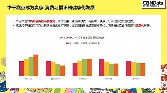 不过,随着消费者饮食习惯的健康化转移,蜜饯果干、糖果巧克力等高糖食品的在线销售占比出现下降趋势。