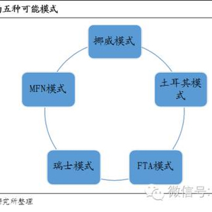第五种是MFN模式:英国直接承担WTO框架下欧盟的对外关税水平,但是贸易自由化的程度最低,同时可能会面临非关税贸易壁垒的问题。