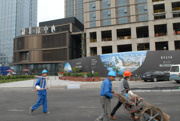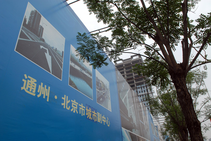 "北京城市副中心",通州在建楼盘外的护板上频繁出现的几个字。