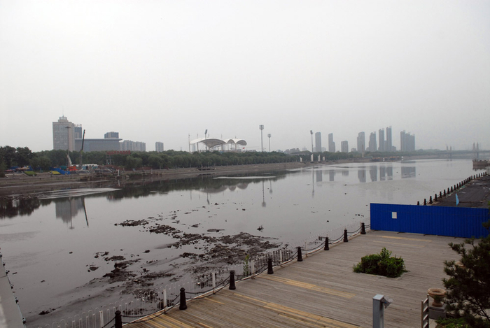 通州东关大桥,远处是正在建的北京副中心行政区。