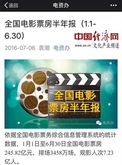 2016上半年电影票房数据出炉 暑期档或扛起"600亿"重任