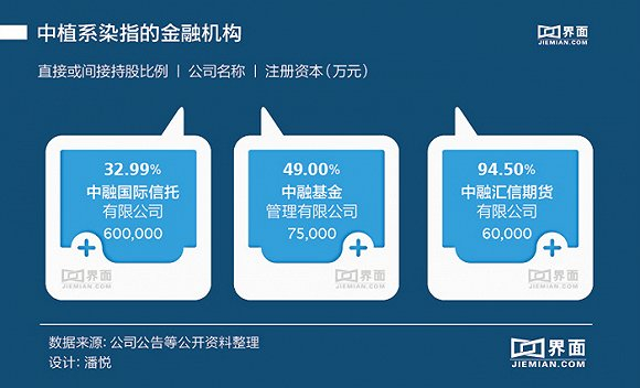 时至今日,依托中融信托发展起来的“中植系”版图已经成形。目前,除了中融信托和已有兴业矿业这一上市平台的矿产板块,“中植系”的业务还覆盖典当(中泰创展控股有限公司)、并购(中植金控资本管理有限公司)、担保(北京中融汇投资担保有限公司)、第三方理财(中植财富、恒天财富、大唐财富、新湖财富、高晟财富)等。
