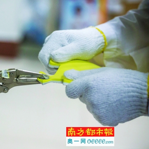 测试人员剪出化学测试的样品。