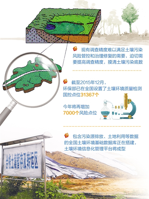 记者从环保部获悉,截至2015年12月份,这项工作已在全国设置了土壤环境质量监测国控点位31367个,其中包括一般点位22816个,风险点位8551个,已覆盖90%县(市、区)。据介绍,环保部今年准备将再增加7000个风险点位。