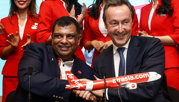 图片来源:AFP刚刚过去的范堡罗空展上,空客的风头盖过正在庆祝百岁诞辰的波音,一举拿下279架飞机订单和意向订单,总价值约350亿美元,其中包括廉价航空亚航(AirAsia)订购的100架A320neo。空展上,空客CEO法布里斯·布利叶(Fabrice Bregier)和亚航CEO托尼·费尔南德斯(Tony Fernandes)喜笑颜开的同框画面令人印象深刻。