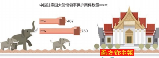 中国驻泰国大使馆参赞兼总领事李春林介绍,今年每月都有100多起领事保护协助案件。2015年中国驻泰国大使馆有700多宗领事保护案件。而2014年仅约500起。