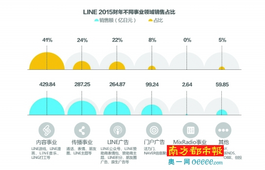 根据该公司递交的美上市招股说明书显示,LINE收入来源主要依靠通讯(实为卖表情贴图)、内容(游戏)和广告这三方面,三者2015年全年营收占比分别为23.9%、40.9%和30.2%.这三方面呈现的内容,均是利用LINEFRIENDS可爱的形象。