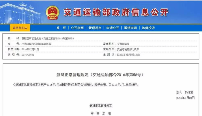 “我们抱歉地通知您,您乘坐的xxxx航班延误。”这句话可能是候机中的乘客最不愿意听到的一句话。多年来,因各种延误原因,航班正常率饱受诟病。由航班延误引发的一系列问题有望得到进一步解决。日前,交通运输部在其官网上发布《航班正常管理规定》,该《规定》将于明年1月1日起实施。规定都有哪些内容?与您出行息息相关,赶快你看看!