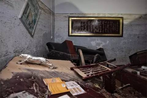 △ 邢台大贤村遭水淹后的房屋,牌匾上的黄线即为当时水位线。(图自新京报)