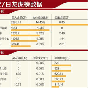26日盘后数据显示,民族证券乐山小十字营业部买入305.32万元。不过,该营业部27日出现在了卖五席位上,当天卖出313.41万元。