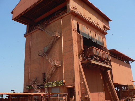 美铝CBG项目1964年启动基础设施建设,建设矿区、修建了一条135公里长的专用铁路,在几内亚Rio Nunez河入海口处的KAMSAR建设了一个深水港口。在港口区建设了转送带、烘干塔、粉碎塔等配套设施。