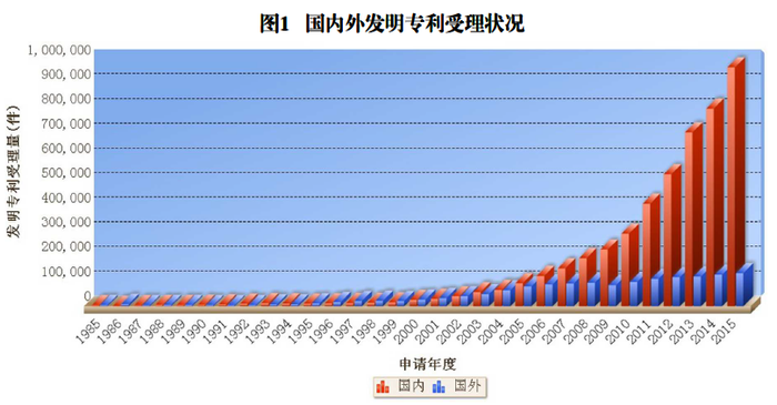 2015年,我国发明专利申请受理量达110.2万件,同比增长18.7%,连续5年居世界首位。