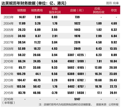 也正是这一年,达芙妮销售收入达到105.29亿港元,公司控股股东应占利润达到9.56亿港元。