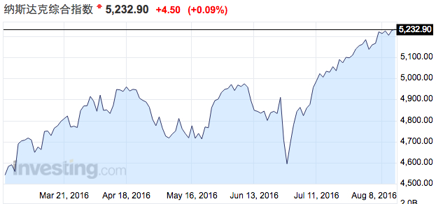 而在上周的最后一个交易日(8月12日),美股并未出现重大反转。纳斯达克指数连续第二日刷新收盘纪录高位,涨幅0.09%,报5232.90点,本周累涨0.23%。至此,纳指已经七周连涨,创2012年以来最长连续上涨周数,6月底以来累计上涨接近14%;标普500、道指较上日的纪录高位小幅滑落,标普500指数收跌1.74点,报2184.05点,本周累涨0.05%;道指收跌37.05点,报18576.47点,本周累涨0.17%。