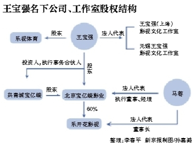 而由马蓉出资的乐开花影视,则在2015年变更为宝亿嵘的子公司,目前乐开花影视的股东是宝亿嵘影业和另一家企业。
