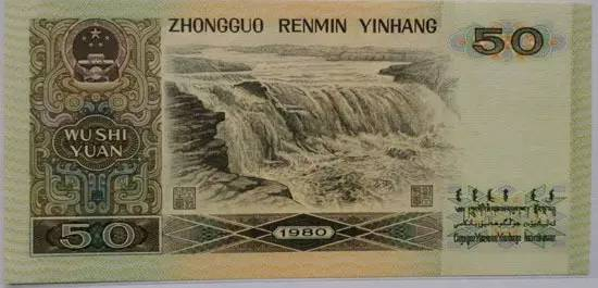 在第四套人民币的所有券别中,1980年版的50元券存世量是最少的,而目前市面上已基本不见有流通,一种说法是1990年版的50元券发行之后,1980年版的就被逐步回收。
