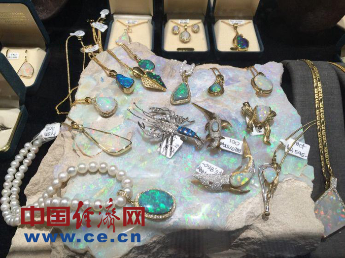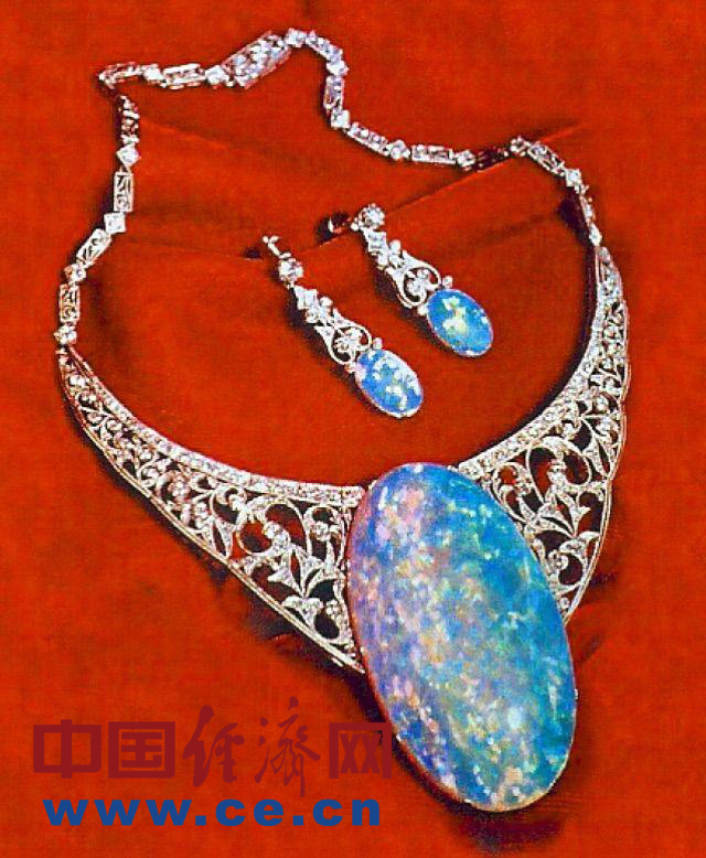 1954年,澳大利亚政府把总重205克拉的(Andamooka opal)爱多姆克欧泊镶在项链上送给了英国伊丽莎白女王,这条项链被称为“女王的欧泊”。