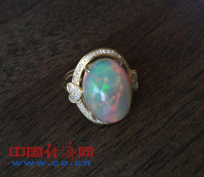 下图这枚戒指就是产自埃塞俄比亚品质较好的一块欧泊,单从外表买家是不是很难区分宝石的产地?因此在入手欧泊尤其是浅色欧泊前一定要与卖家确认石头的产地,最好让其出示证书。