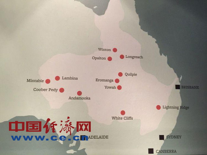 从目前已经发现的欧泊矿源来看,全世界95%以上的优质变彩欧泊都产自澳大利亚。但澳大利亚欧泊多为家族或个人开采经营,并没有太多大公司的介入,虽历经一百多年的发展,资源储量并不明朗。Coober Pedy周边为全球白欧泊的最大产区,历史上高峰期曾有高达400多澳宝矿区同时开采,而目前因为吸引不到年轻矿工,只剩下50多个矿区还在继续开挖。下图是澳大利亚欧泊的全部产区,尤以lightning ridge闪电岭的黑欧泊品质最为著名。
