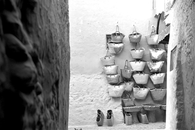 从广场穿梭进古城,纵然小巷里如迷宫般错综复杂,似乎一不小心就会迷路,而巷子里一排排的商店售卖着精致的陶器、手工的铁制用品、多彩的民族服饰,哪怕是迷失了方向,也是迷失在这五彩斑斓的世界里,况且还有那大片大片的土红浪漫为你带路。