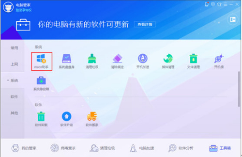 新界面下端新增了TAB功能区、工具推荐区、运营区域。功能区可以读取需要清理的垃圾量、内存、漏洞待修复量等情况,用户在打开腾讯电脑管家后第一时间可以了解到自己的电脑状态,方便快捷。工具推荐区则主要依靠机器学习,根据不同用户使用管家工具箱功能的情况,推荐用户使用相关工具;而运营区域则更多凸显产品的个性化特性,将推送与用户价值相关的品牌、热点信息。