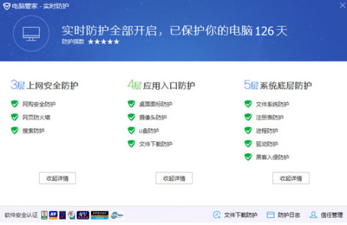 腾讯电脑管家目前的安全防护能力已经达到国际领先水平,获得了VB100、AV-Test、英国西海岸实验室CheckMark、ICSA和AV-C、OPSWAT、AVAR亚洲病毒研究者协会七项国际权威认证。