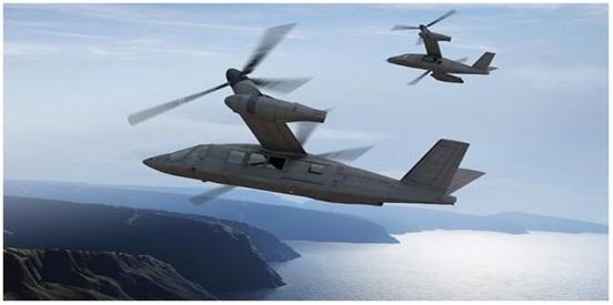 上图第一幅显示的是西科斯基/波音的SB-1方案。该直升机最大起飞重量约为13.6吨,可在高温、高原环境下搭载4名机组成员和12名全副武装的士兵,最大飞行速度能够达到250节(463千米/时)。预计将在2016年晚些时候开始总装,2017年下半年完成首飞。