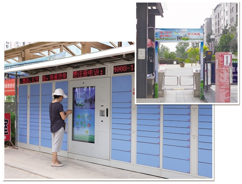 下图 智能快递柜可便利地收发快递,也是一个多功能综合自助服务终端,方便居民办理各项政务事项、缴纳各类费用。