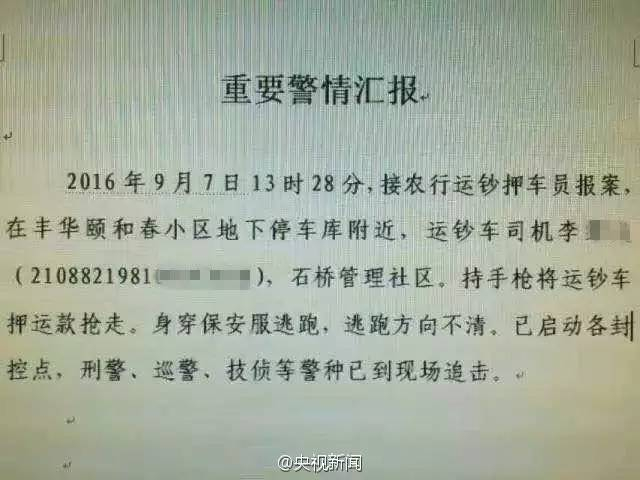 辽宁运钞车劫案嫌犯落网 被劫600万全部追回