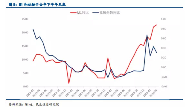 供需矛盾是基本面的推动因素,但是螺纹钢价格出现如此大幅度的上涨,离不开货币宽松的影响。虽然美国从去年12月份开启了加息周期,但是本轮加息节奏相对缓慢,全球仍处于货币宽松的大环境中,这构成了大宗商品见底反弹的一个条件。另外更为重要的影响因素是我国宽松的货币环境。在政府稳增长的背景下,国内的M2出现大幅增长,但基础货币因受到外汇占款下滑的影响而下降,这就意味着货币乘数提升了,经济活力也上升了,使得信贷水平大幅好转。