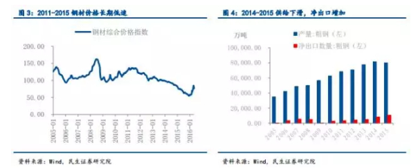 另外需要关注的是,粗钢净出口量在近两年来迅速增长,主要是通过扩大新兴经济体市场份额,少部分依靠欧洲经济复苏拉动。外需的拉动不仅抵消了内需不足的影响,还进一步消化了本身已岌岌可危的库存。受全球经济复苏疲弱的影响,2015年全球粗钢产量 下滑,仅印度、南非等少数部分国家产量增长。在全球钢铁消费需求下滑的格局下,我国钢材出口的快速增长主要依靠低价竞争优势,但这也引发了国际市场频繁的“双反”调查。