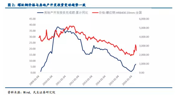 2、下游分散,与经济相关度高。螺纹钢的下游大致可分为基建、房地产两大块,虽然下游需求用途不同,但不同类型的螺纹钢价格具有联动性,不同的需求也会产生互补效应。例如,09年房地产低迷但基建高涨,人们基于传统上对房地产行业的重视,认为市场“需求差”,但出乎意料的是国家进行四万亿经济刺激,高铁基建发力使钢材价格暴涨。因此分析单一需求很难看清楚行业全貌,需对下游需求进行综合判断和分析。