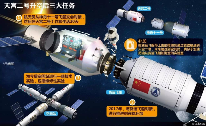 “天宫二号”即将发射,“上天”后,它将主要承担三大任务。