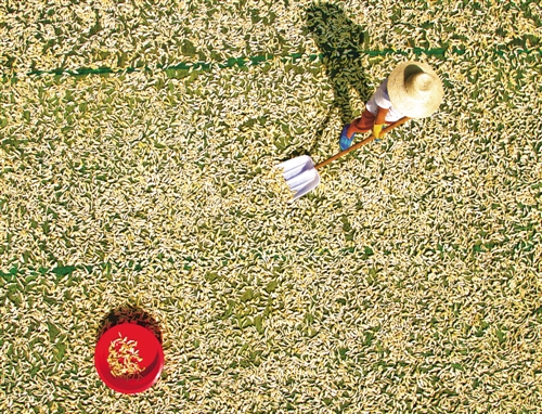 如果说“咬秋”抒发的是丰收的喜悦,“晒秋”则饱含着农民的自豪。走进江西婺源,山间徽派民居土砖外墙与晒架上的是五彩缤纷的丰收果实组合。在湖南、江西、安徽等地山区生活的村民,由于地势复杂,村庄平地极少,只好利用房前屋后及屋顶架晒或挂晒农作物。如今,这种晾晒农作物的特殊农事场景,成了摄影爱好者追逐的素材,“晒秋”美景通过网络、电视、报刊等媒体,变成更多人的秋收喜悦。(经济日报记者 乔金亮)