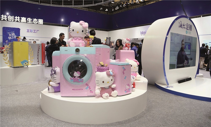 今年早些时候的上海家博会上,海尔展出过它的个性化定制平台——众创汇。这个小微已成功推出Hello Kitty系列家电。让冰箱、洗衣机或空调拥有粉红色Hello Kitty外壳的创意,就来自众创汇网站上的一位消费者,设计——主要是外壳——来自该网站上的注册设计师,生产则由位于胶州的海尔“互联工厂”负责。它的车间流水线上装满了传感器,工人不仅知道手上正在加工的产品是谁下的单,产品制造进度也能实时显示在车间外的监控屏幕上,以及下单者的手机里。