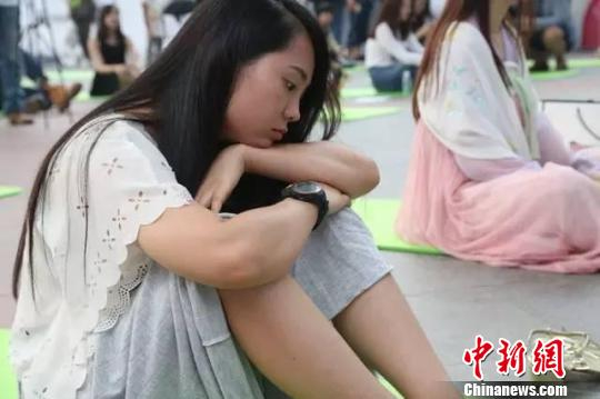 中新网北京9月24日电 (陈溯)24日下午三点,在北京,在世贸天阶,70个不同职业、年龄、身份的都市人来到城市中央广场,用发呆的方式进行一场心灵瑜伽。