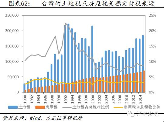 (3)以地价税为中心。台湾的土地税税收总额约为房产税的三倍左右;