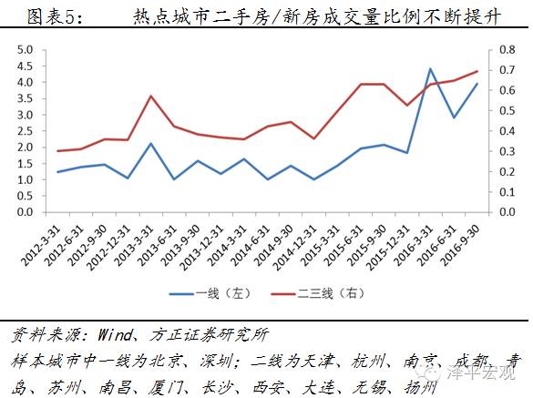 从15个样本热点城市的成交数据中,可以看出二手房成交量/新房成交量数值不断提升。北京和深圳从2009年开始,二手房成交量就已超过新房成交量,步入存量房时代;2012年到2016年9月,二手房/新房成交量比值由2提升至4。重点二三线城市这一比值从2015年初开始迅速提升,目前已到0.7的水平;部分城市的核心区域已步入存量房时代。