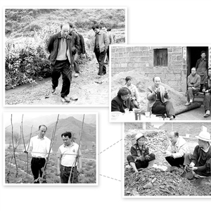 右上图 姜仕坤(左三)在晴隆县马场乡马场村与群众座谈。 (资料图片)