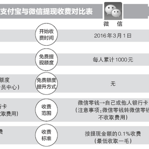 早在9月12日,支付宝就对外发布公告表示,自2016年10月12日起,支付宝将对个人用户超出免费额度的提现收取0.1%的服务费,个人用户每人累计享有2万元基础免费提现额度。今年3月,微信已经开始对用户提现收取0.1%的手续费,每位用户累计享有1000元免费提现额度。由于支付宝和微信都规定“单笔服务费小于0.1元的,按照0.1元收取”,也就意味着用户每次提现最少支付一毛给支付宝或微信。
