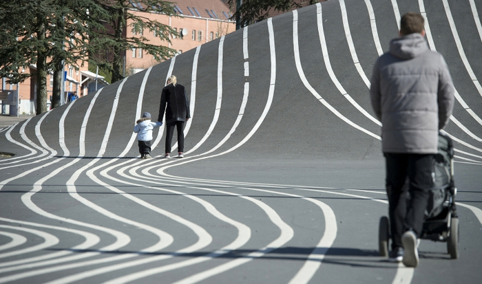 不同民族、人种、信仰与经济条件的人群是哥本哈根外北桥社区的特色,也是其面临的最大挑战。BIG建筑设计、艺术家Superflex与景观公司Topotek 1合作,这是一次构造多元民族城市公共空间的实践。在设计之前,定居于此的60多个民族的居民参与了建议征集活动。所以,公园中有亚美尼亚式的野餐桌、哈萨克斯坦风格的公交站,以及摩洛哥式的喷泉底座等等,视觉上呈现复杂性和丰富性,带来一种健康的文化突破。