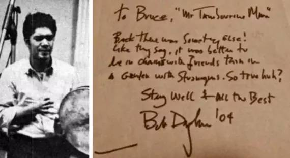 2004年,迪伦给朗霍恩写了封信,告诉他关于《铃鼓先生》的故事。朗霍恩向《河粉屯邮报》证实道:“他确实是后来才意识到要告诉我的。”