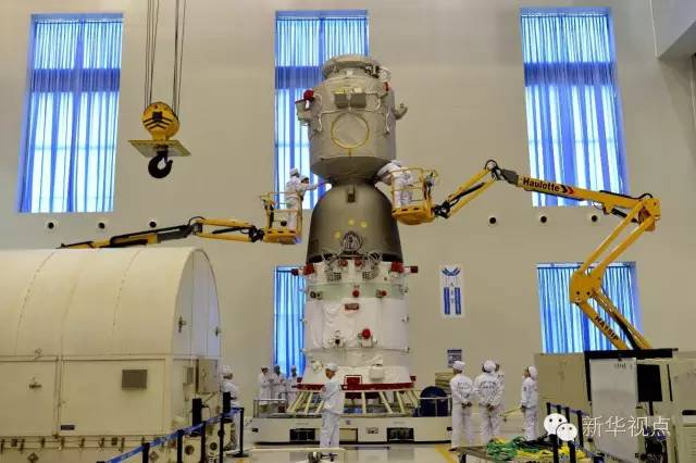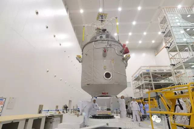 △神舟十一号载人飞船轨道舱吊装(航天科技集团五院提供)
