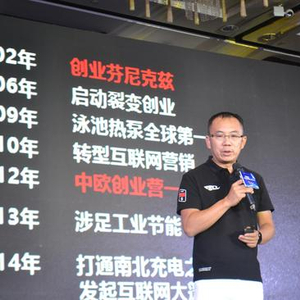 讲一下我自己的历史,我02年创业,非常传统的制作也出生,实际上给国际知名的大牌做贴牌出生,我在06年的时候开始启动质变,09年做泳池热泵全球第一,10年开始转型互联网营销,在这之前我们一直是一个很传统的制造业企业,10年开始有很大的变化,因为那一年很多的企业倒下去。12年进了中欧创业营,是一个非常好的创业组织,这个组织改变了我。13年开始涉足工业节能,14年开始打通南北充电之路,发起互联网大篷车,那个时候用众筹的方式帮特斯拉做了充电的路。15年进了湖畔大学一期,这两个组织对我的影响非常大,尤其是对于传统企业家的建议,你要改变你的圈子,你的圈子不变的话你也就不会变,这几年互联网的朋友比传统行业的朋友比较多,大量的社交活动跟这个圈子的人在一起,这一块是我们变化最大的,同年我的那本书出版《裂变式创业》出版。16年上了新三板,同时做了80天环城。