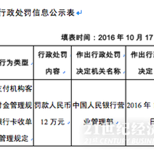 10月18日,央行营业管理部(北京)发布行政处罚信息公示,北京钱袋宝支付技术有限公司(下称“钱袋宝”)因违反支付机构客户备付金管理规定、银行卡收单业务管理规定,被央行营业管理部罚款人民币12万元。